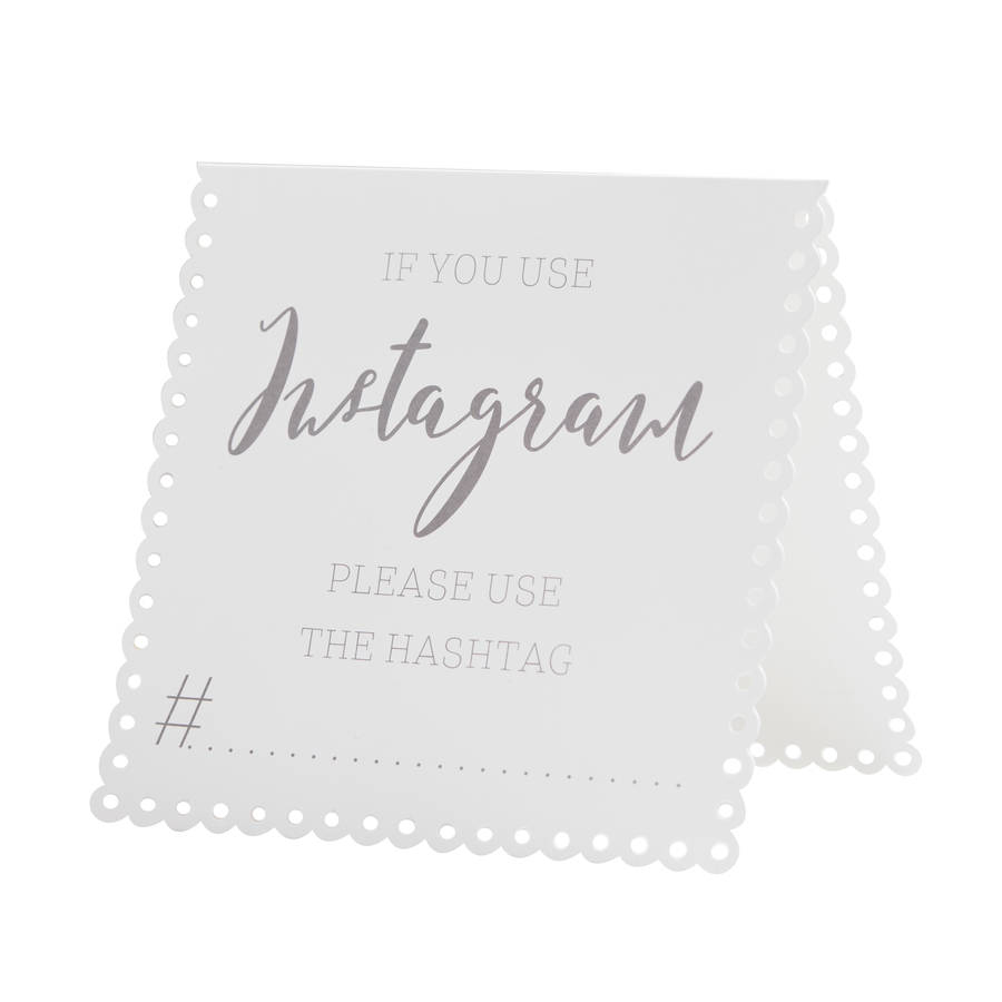 Hashtag! Söta skyltar i kartong som visar vilken hashtag ni valt till festen eller bröllopet.