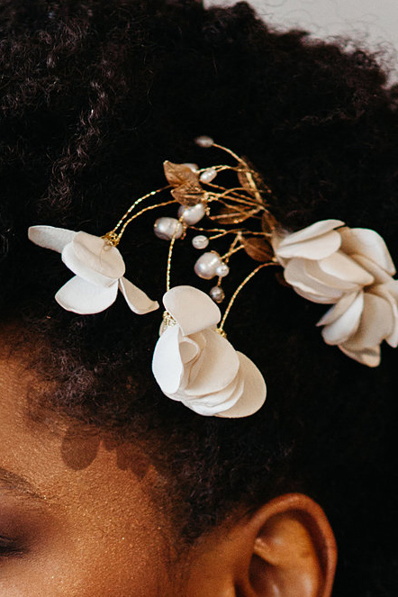 Fäst på clips vilket gör håraccessoaren passande också för dig med riktigt kort hår. Designad och tillverkad för hand i Usa.
