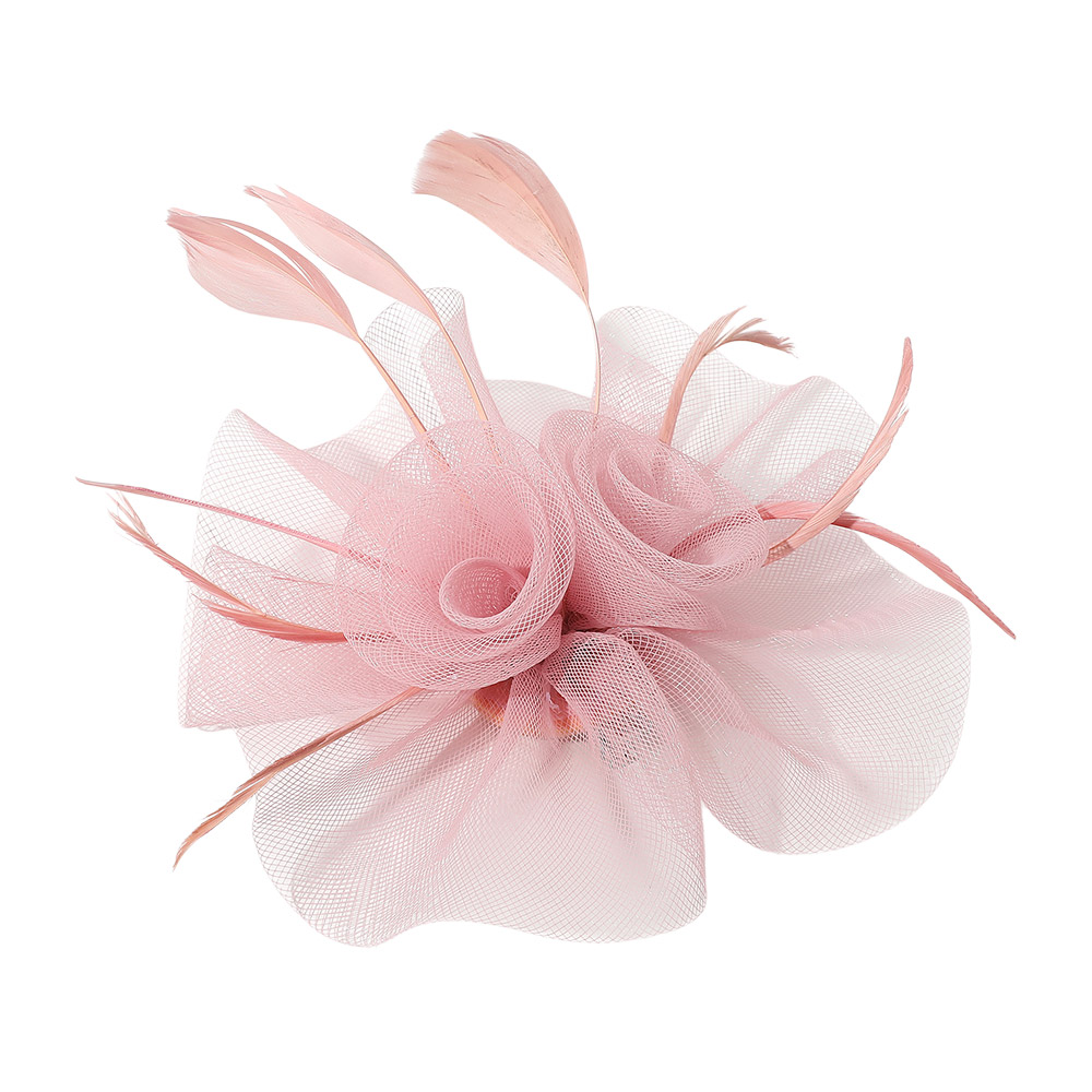 Fästs i håret antingen med hårclip som sitter på baksidan eller med det matchande rosa tygdiademet som medföljer.