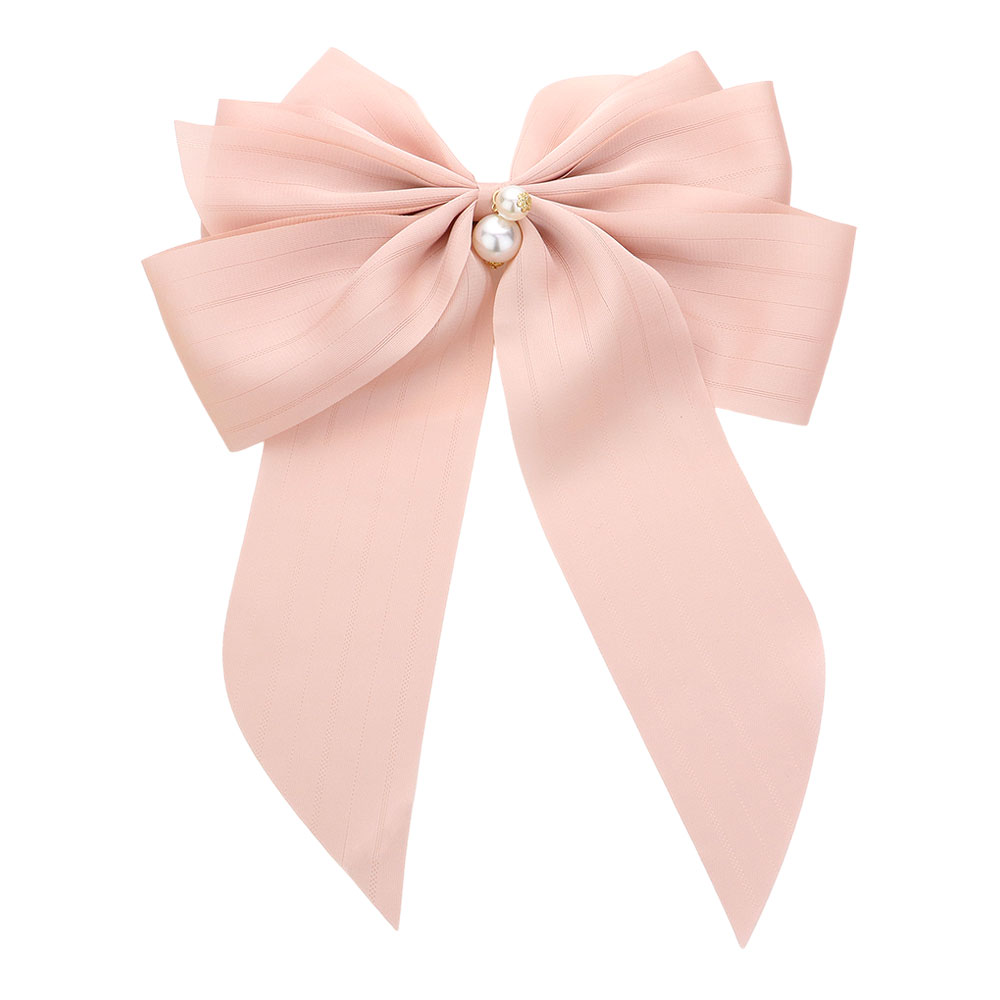 Hårspänne med klassisk rosett i chiffong dekorerad med falska pärlor.