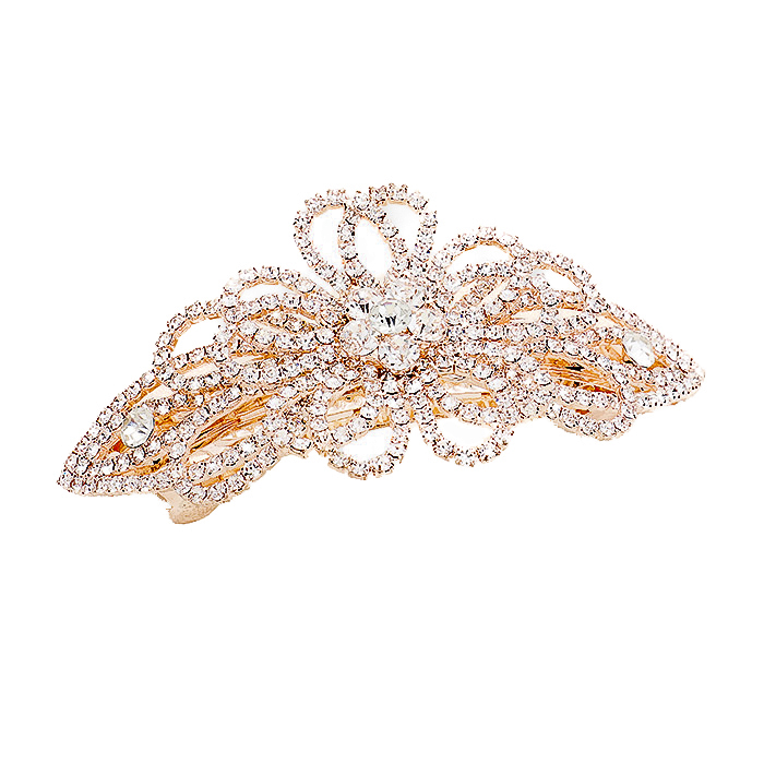 Festligt hårspänne med klara kristaller på roséguldfärgad bas.