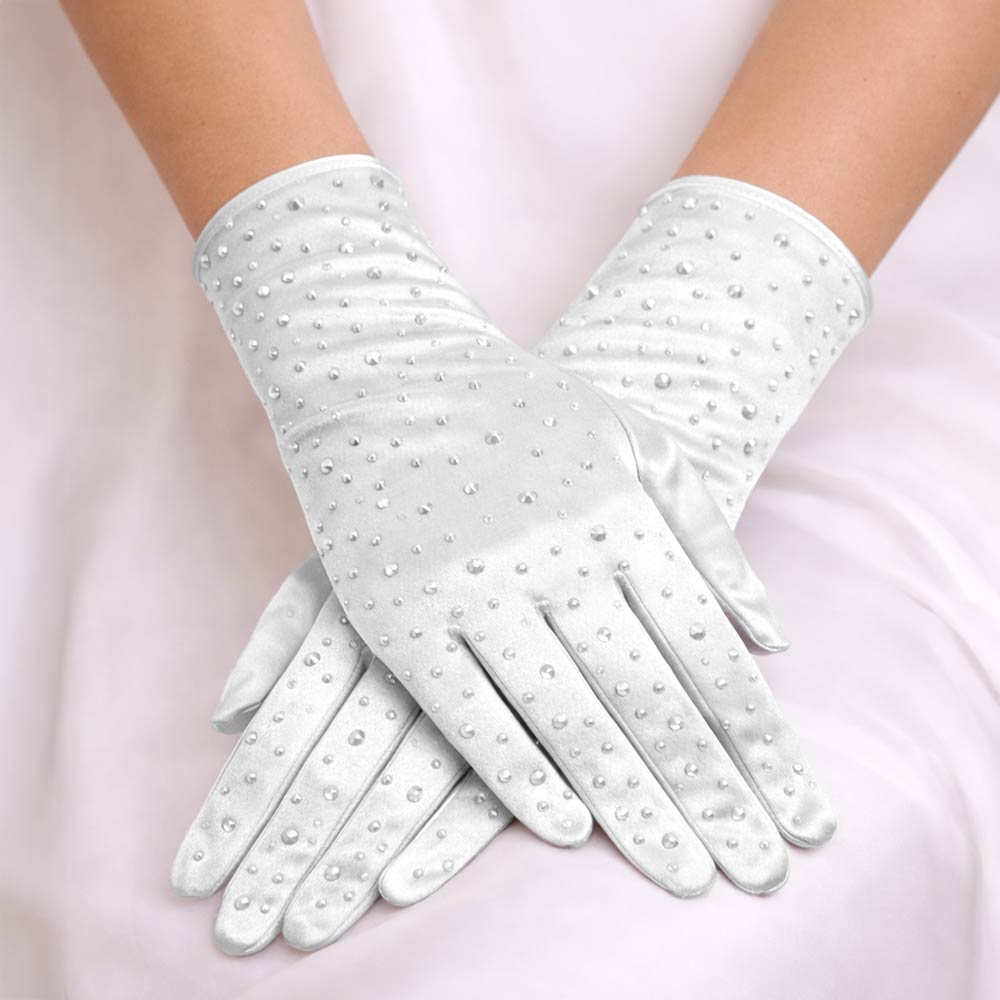 Handledskorta, vita satinhandskar till bal eller bröllop!