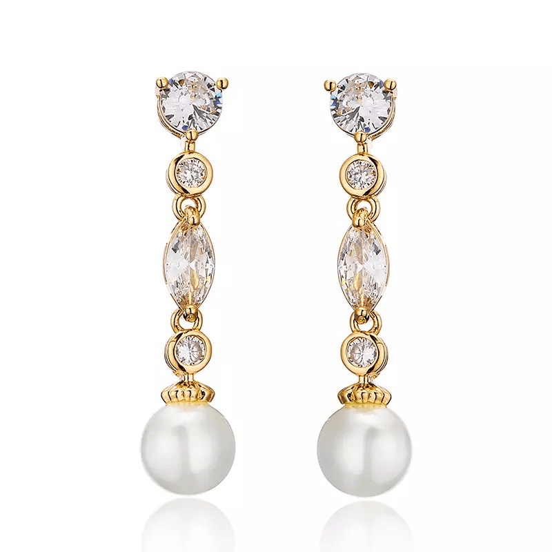 Guldpläterade, dekorerade med cubic zirconias och falska pärlor.