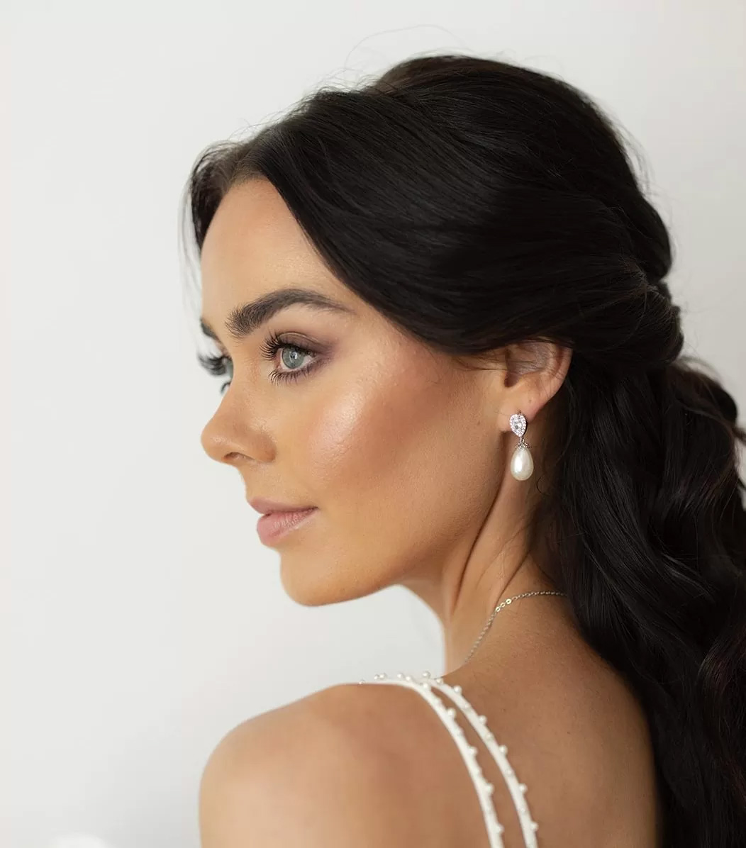 Ljust cremefärgad, droppformadf falsk pärla och cubic zirconias.